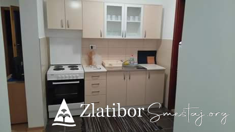 Apartman 60m2 u sirem centru Zlatibora (dve spavace sobe, dnevna soba sa kuhinjom i trpezarijom, kupatilo, parking mesto, grejanje). Novogradnja