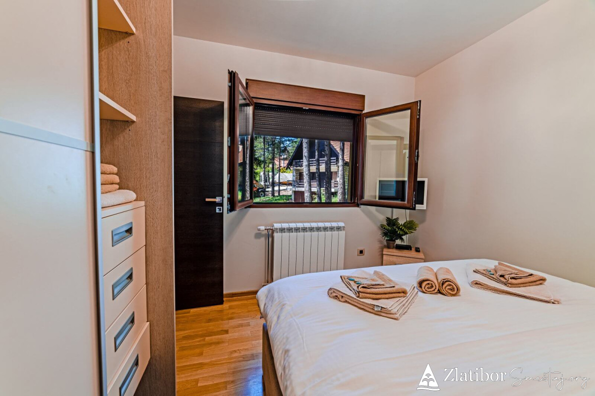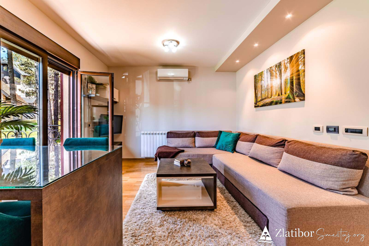 APARTMAN ERAK Relax je lux apartman povrsine 42m2 na perfektnoj lokaciji - oko 50 m2 od marketa Maxi, 200 m od hotela Palisad i oko 300m od centra, odnosno na svega 5 minuta mirnog hoda do centra. Nalazi se u predivnoj zgradi, u mirnoj ulici, okruženoj četinarima, koji obezbeđuju maksimalno uživanje za sve generacije, naročito tokom letnjih dana.