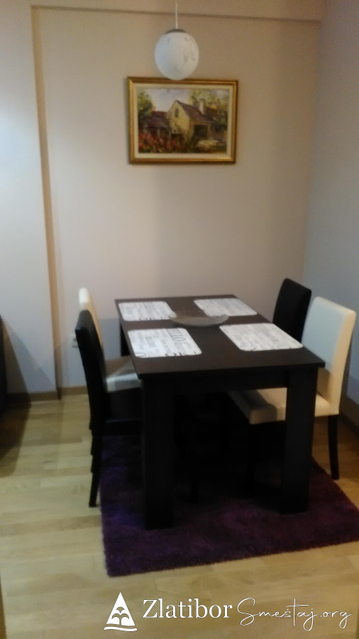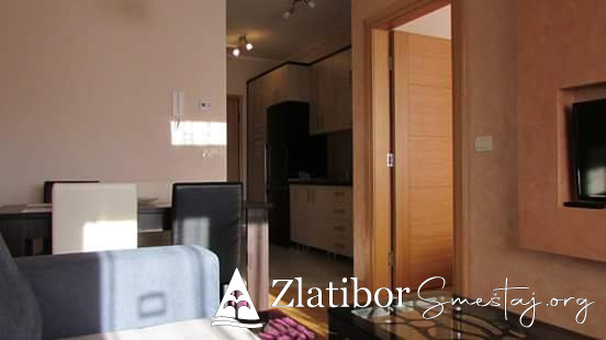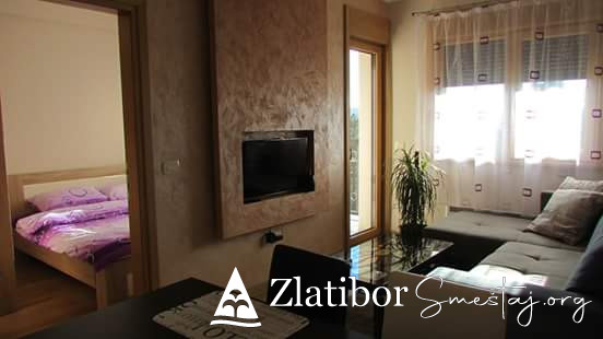 Apartman se nalazi 100 m od centra Zlatibora,peko puta hotela"Mona". 34m2 pogodan za max.4 osobe, poseduje odvojenu spavacu sobu,kompletno opremljenu kuhinju, kupatillo, internet, kablovsku. Zgrada poseduje privatan parking i lif.