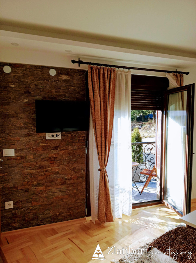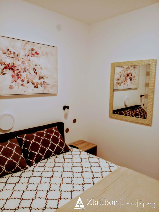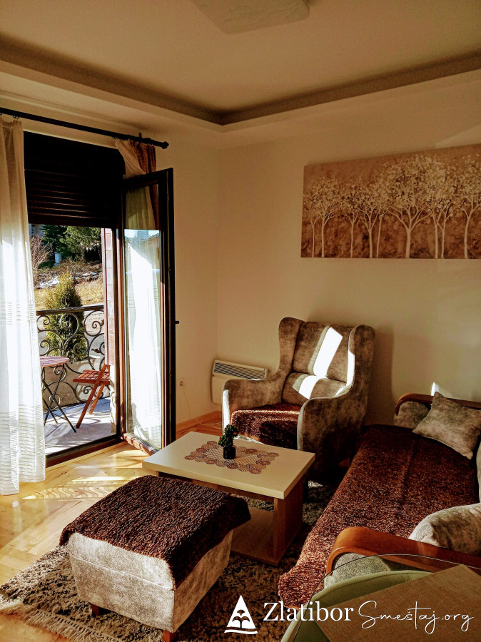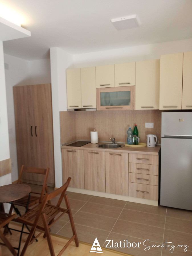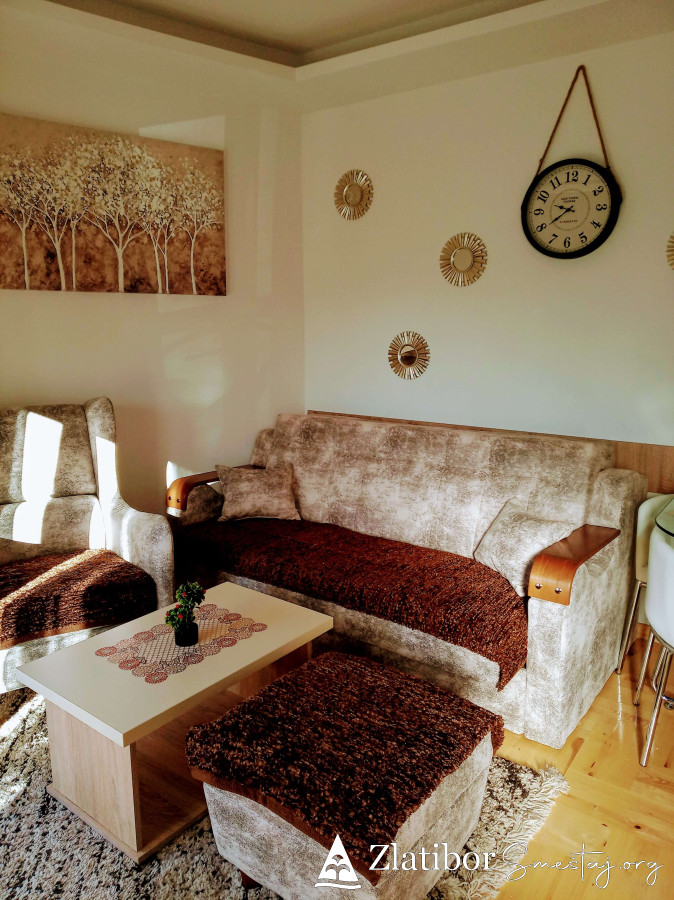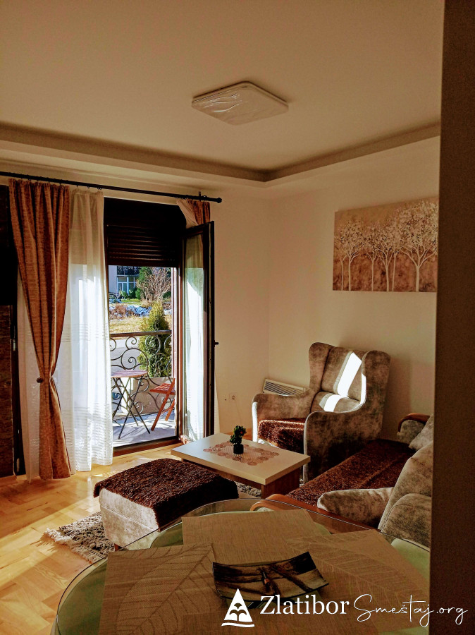 Poseduje dnevnu sobu, kuhinju, spavaću sobu, kupatilo, predsoblje i terasu. Kompletno je opremljen sa posudem, posteljinom, peškirima i svemu sto je potrebno za lep odmor. Privatan parking u sklopu objekta, besplata wifi, dva televizora, grejanje norveški radijatori, zaseban ulaz.