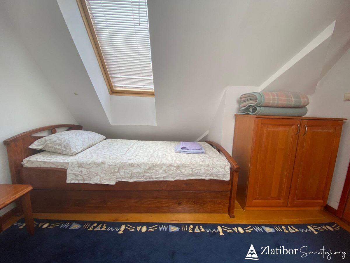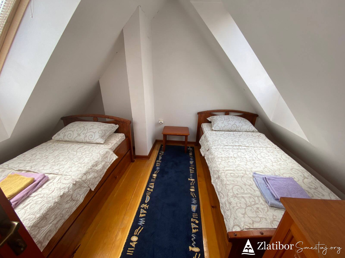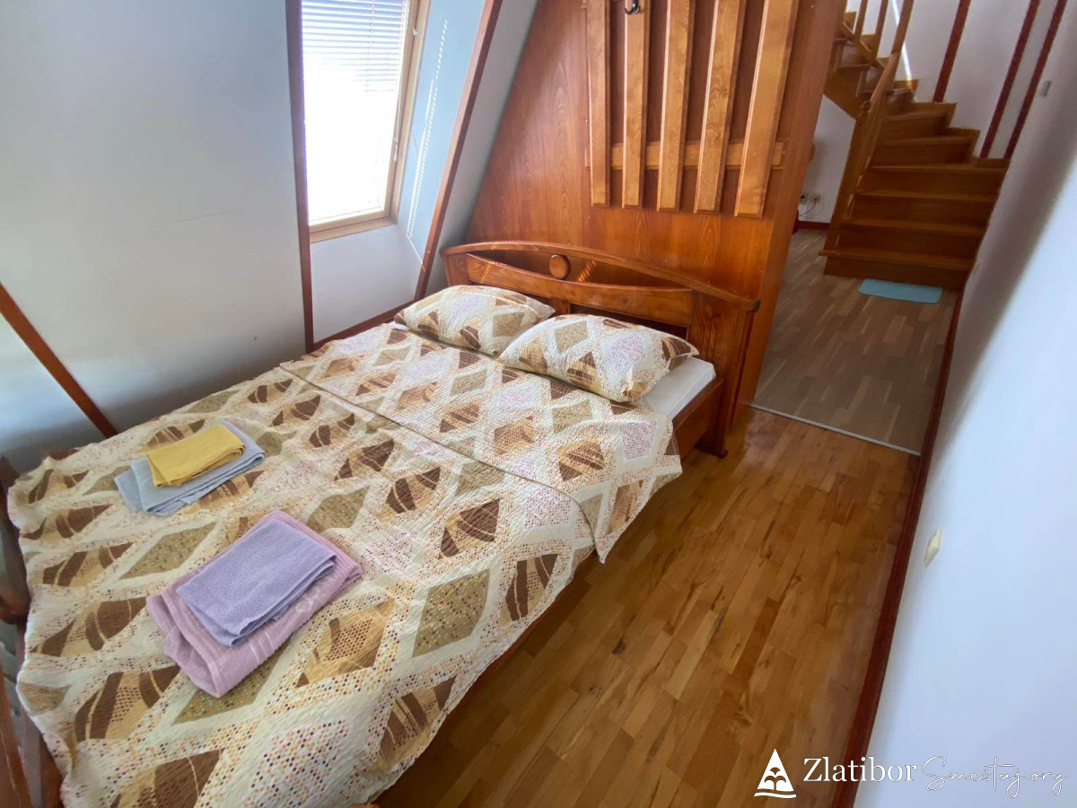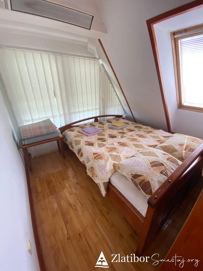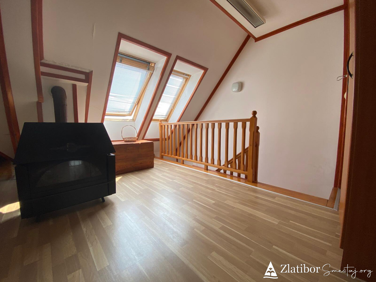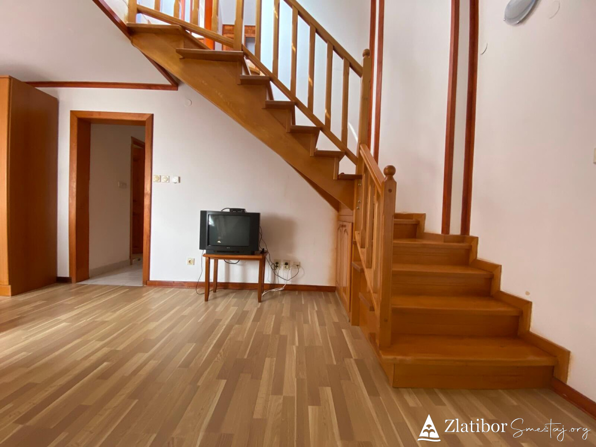 Na prvom nivou se nalazi dnevni boravak u kome se nalazi ugaona garnitura koja se razvlači i postaje udoban ležaj za dve osobe. Drugi nivo poseduje francuski ležaj za dve osobe, a na trećem nivou se nalazi spavaća soba sa dva zasebna kreveta.