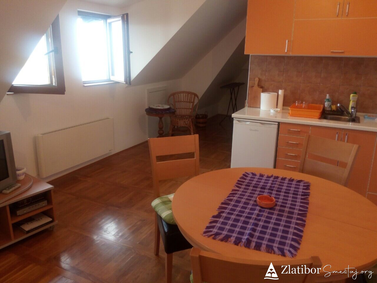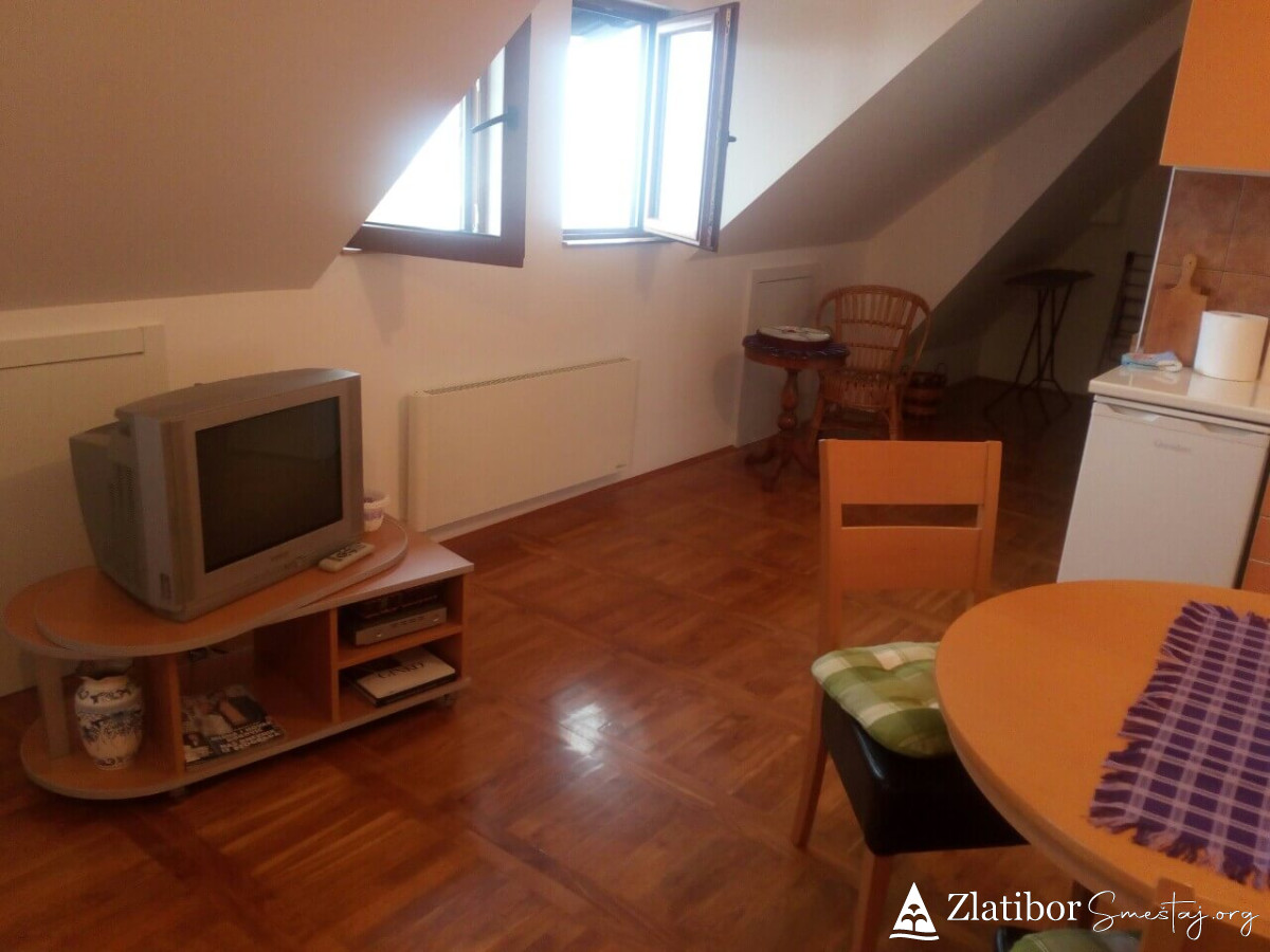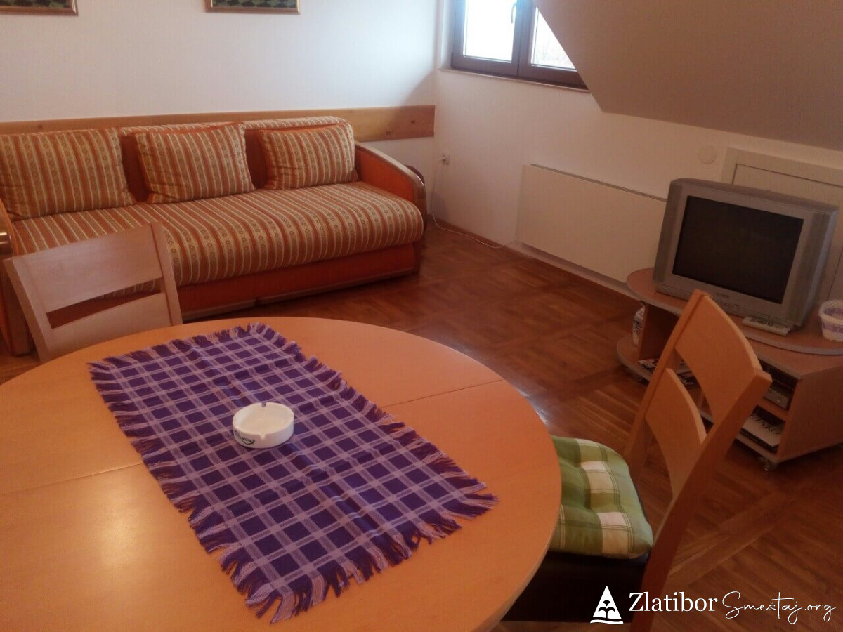 Apartman na Zlatiboru, Jevrejsko brdo, 40m2. Poseduje dnevni boravak, trpezariju, spavacu sobu i kupatilo.