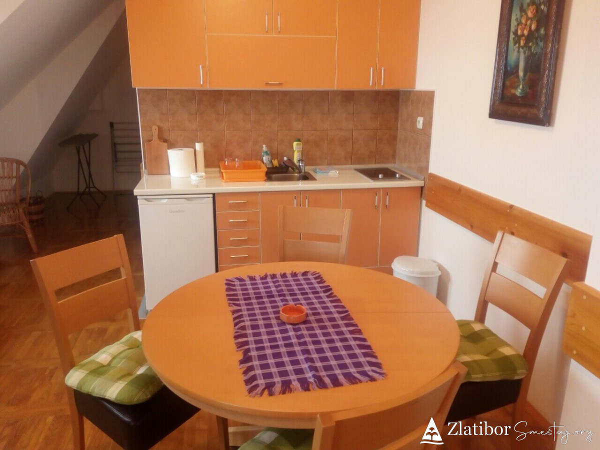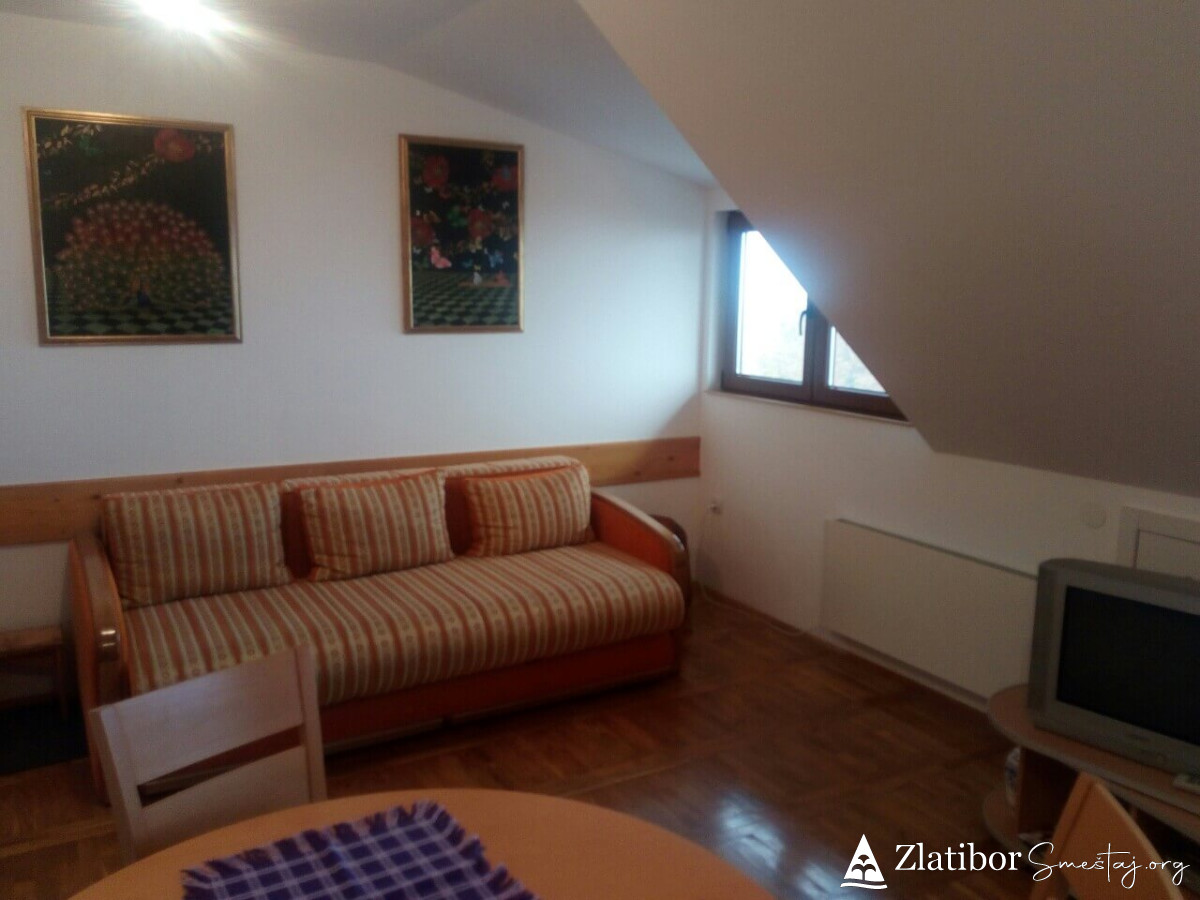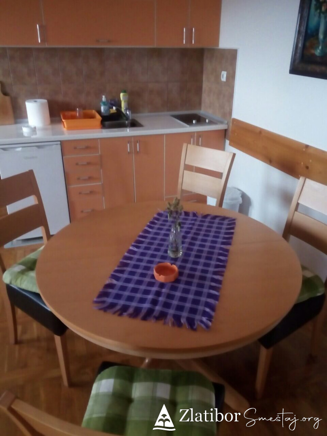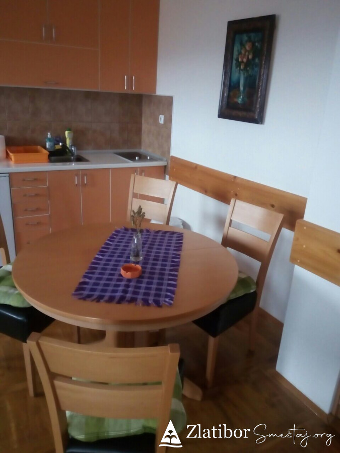 Apartman na Zlatiboru, Jevrejsko brdo, 40m2. Poseduje dnevni boravak, trpezariju, spavacu sobu i kupatilo.