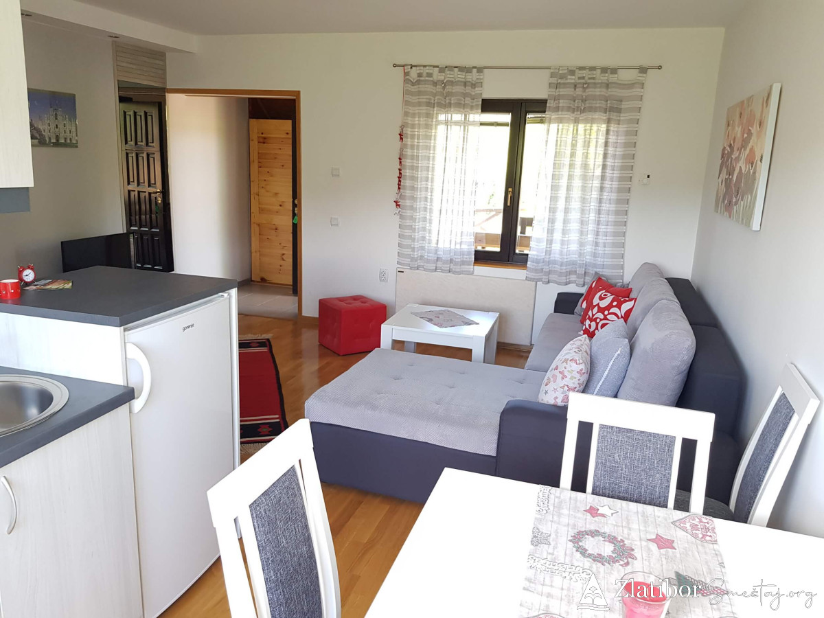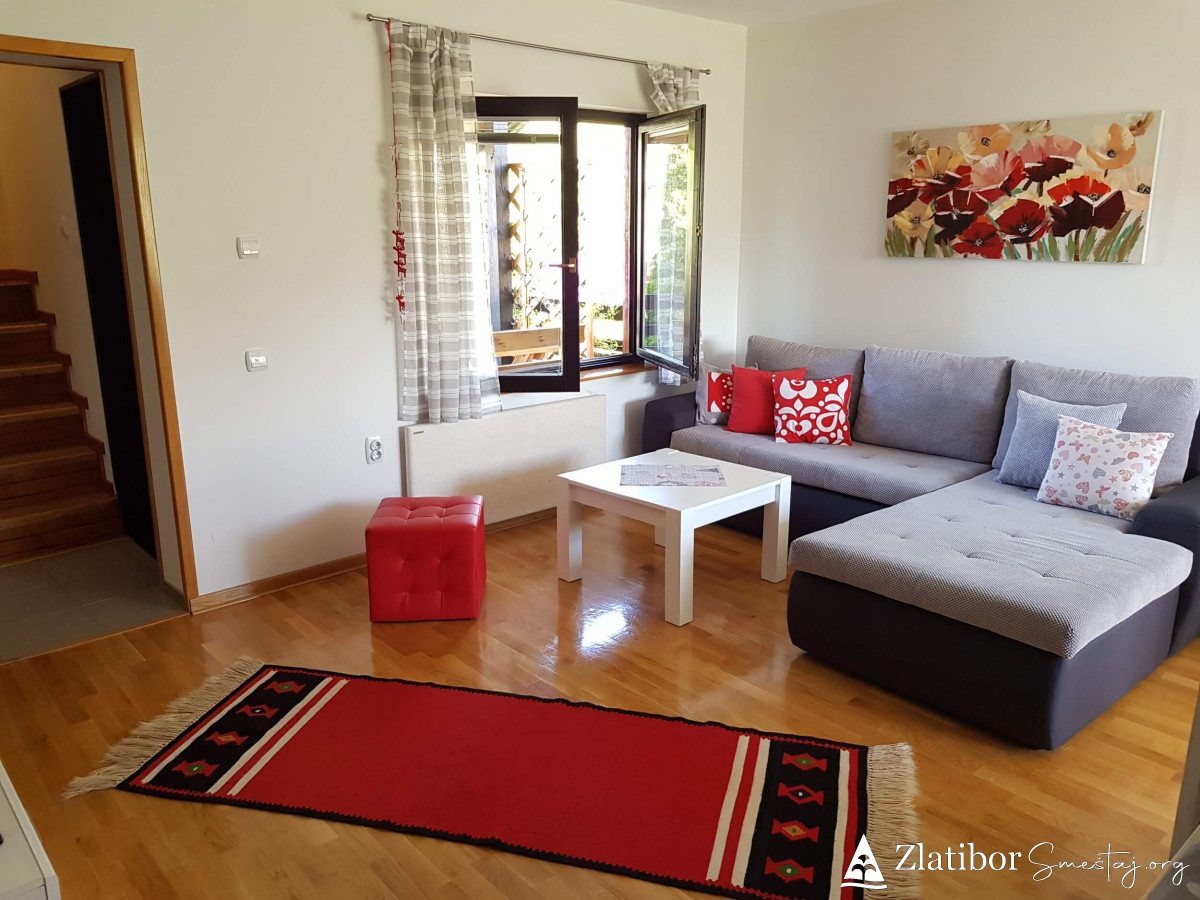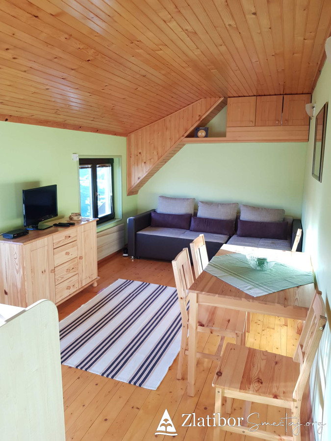 - Dnevni boravak sa LCD televizorom i satelitskom televizijom, veliki trosed za spavanje.